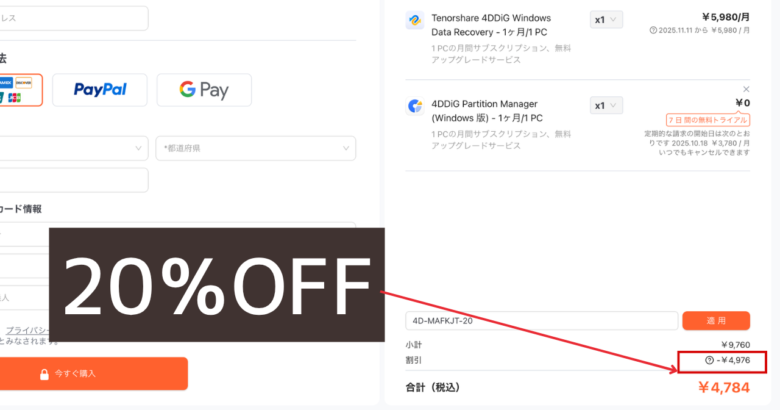 「4DDiG」は、他のデータ復旧ソフトよりもセールが多い印象です。
