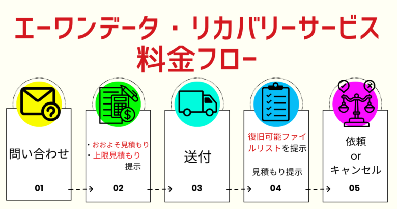 エーワンデータ・リカバリーサービスの料金フローの特徴は2点あります。