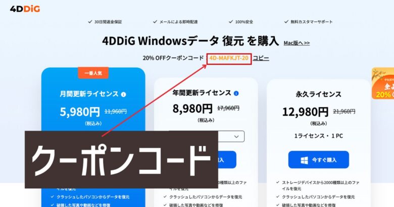 - 購入後30日間の返金保証有り(Tenorshare返金ポリシー)