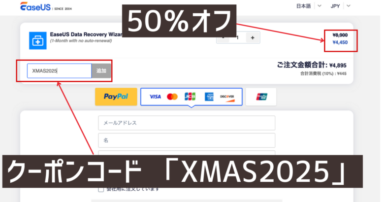 今だけ、購入画面でクーポンコード「XMAS2025」を入力するだけで50%オフのキャンペーン中です。