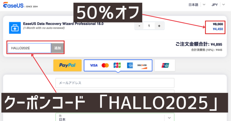 今だけ、購入画面でクーポンコード「HALLO2025」を入力するだけで50%オフのキャンペーン中です。
