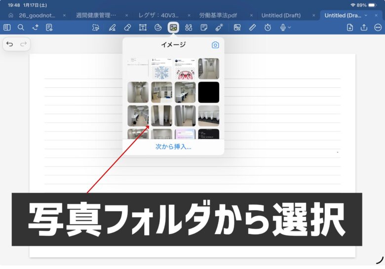 手元の紙の本や資料も、iPadのカメラ機能を使えば簡単にGoodnotesに取り込めます。