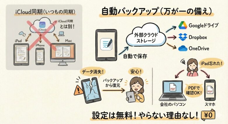 手書きならではの手軽さや自由な表現を活かしつつ、検索機能やバックアップ、複数デバイスでの同期といったデジタルの強みもフル活用できます。