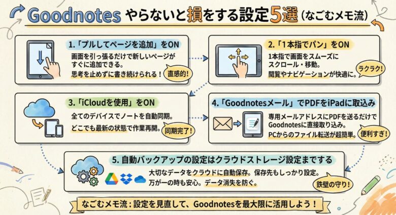 この記事では、Goodnotesで「やって良かった」と思える設定を解説します。