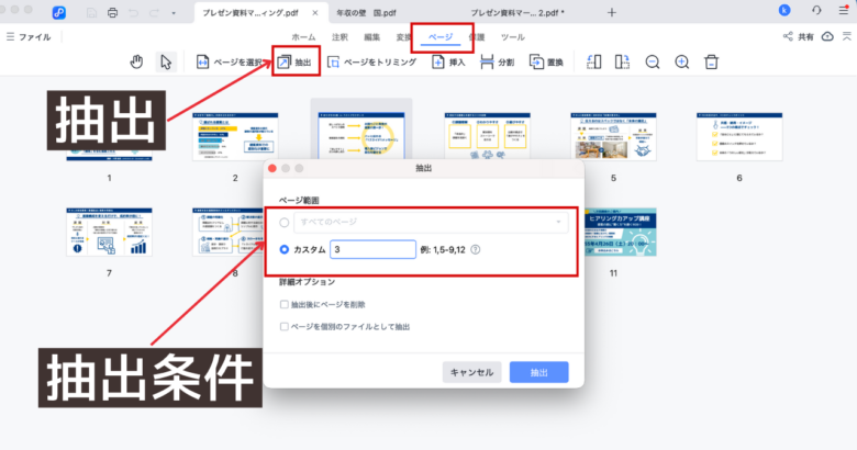 ページの抽出は、たくさんあるページから必要なページだけを抜き出す機能です。