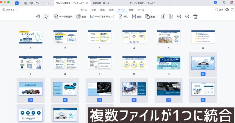 これを使えば、必要なページだけを抜き出したり、複数に分かれたPDFをひとつにまとめたりと、自由度の高い整理が可能になります。