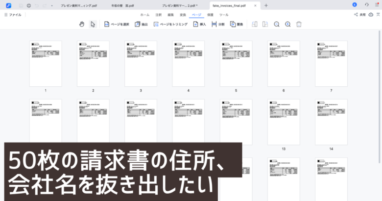 PDNobのページ管理の活用事例として「50枚の請求書から住所と会社名を抜き出して宛名ラベルを作る」を解説します。