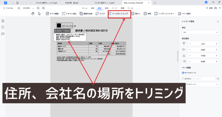 特にトリミング機能を使えば、数百枚もの請求書を一瞬で抜き出し、2次利用可能の資料を生成することが可能となります。