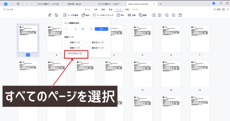すべてのページを選択する