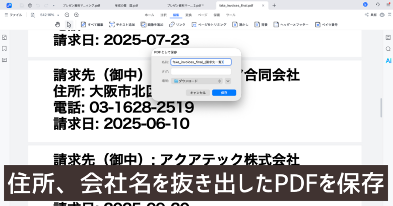 住所、会社名だけのPDFファイルを保存します。