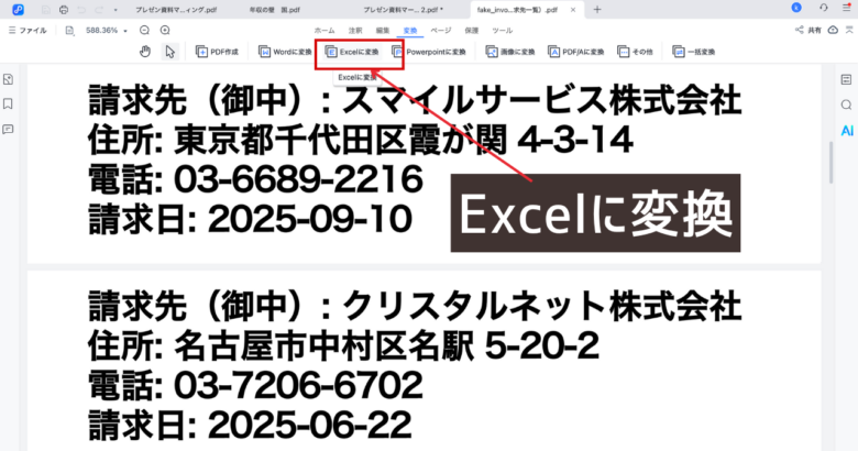 PDNobにはPDFをExcelやWordに変換する機能があります。