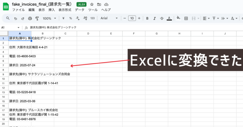 Excelに変換されました。