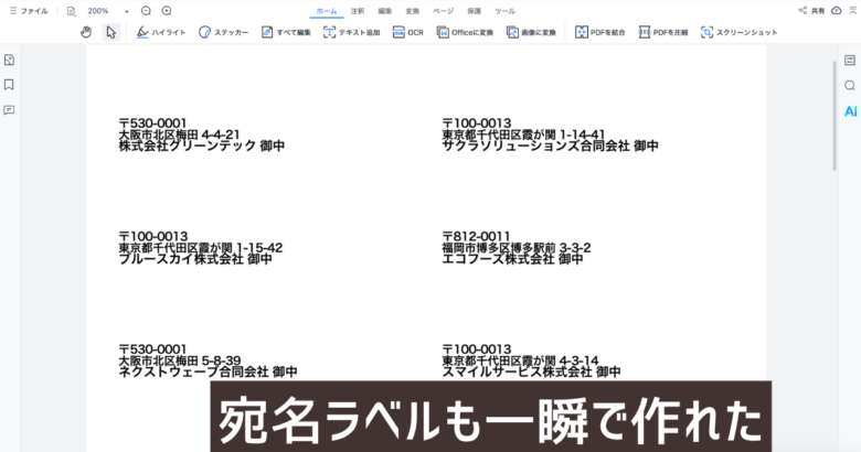 すると、宛名ラベルも一瞬で作ることができました。